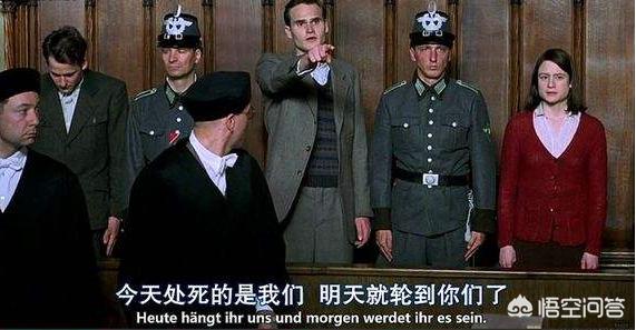 但是,值得注意的是,在40年代,德国也出现了不少觉醒的民众,开始以一己之力,反抗纳粹的暴政。相关事迹也都被电影演绎过,比如2016年的电影《柏林孤影》(工人阶级夫妇奥托和安娜把自己唯一的独生子送上了战场。不幸的是,儿子在惨烈的战争中身亡。这对夫妇决定用自己的方式——写反纳粹小纸条,反抗纳粹党的极权统治)。还有用真人真名,并且被多次搬上银屏的《白玫瑰》、《希望与反抗》(电影的两个不同的版本,说的一个事),叙述的是反纳粹大学生群体“白玫瑰”组织成员,索菲与汉斯兄妹被盖世太保捉住,审问过程中,索菲为了保护同伴,将罪责揽到自己身上,兄妹二人最终被宣判死刑,上了断头台(纳粹德国为了以儆效尤,对于反抗其统治的行为,多选择使用铡刀行刑)。当然,历史最后显示正义站在索菲这边,正如他们对法官的预言:“今天你杀死我们,明天,就轮到你掉脑袋了。”