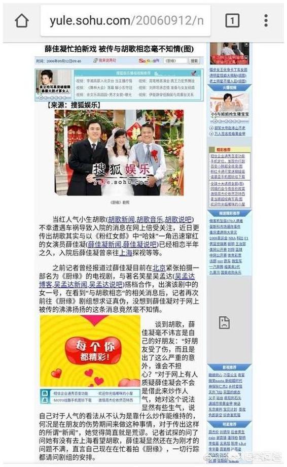 而事实真相是怎样的呢? 且回顾一下06年9月胡歌刚出事时的新闻报道,"薛佳凝忙拍新戏,被传与胡歌相恋毫不知情"。