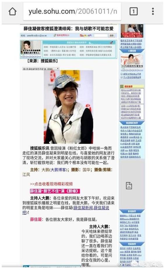 06.10.11 薛佳凝做客搜狐澄清绯闻:我与胡歌不可能恋爱(此次访谈中提到刚结束《厨缘》的拍摄)http://yule.sohu.com/20061011/n245740317.shtml