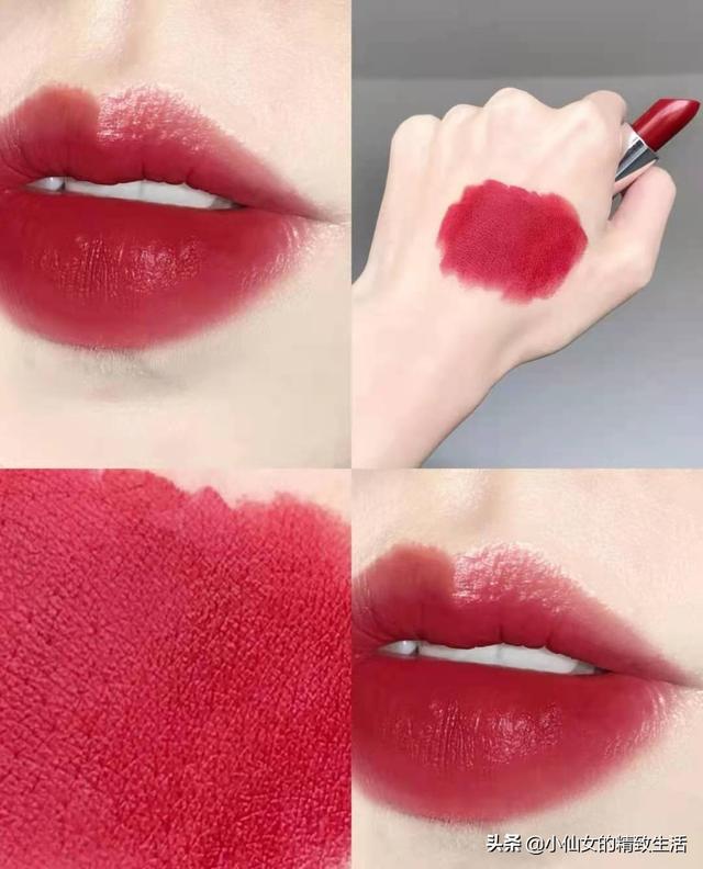 红色系的口红涂了会非常有气场,但是不同品牌的色调,也会出来不同的效果。