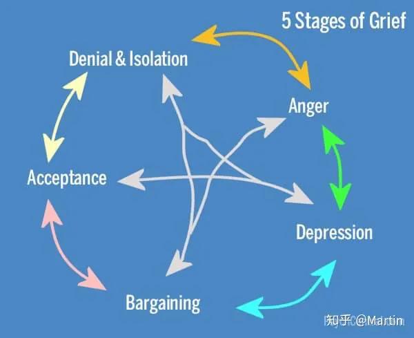 对绝大多数人来说,这 5 个阶段可不会按照顺序,一步步来,更可能会上下左右跳跃,在这 5 个阶段里横冲直撞。