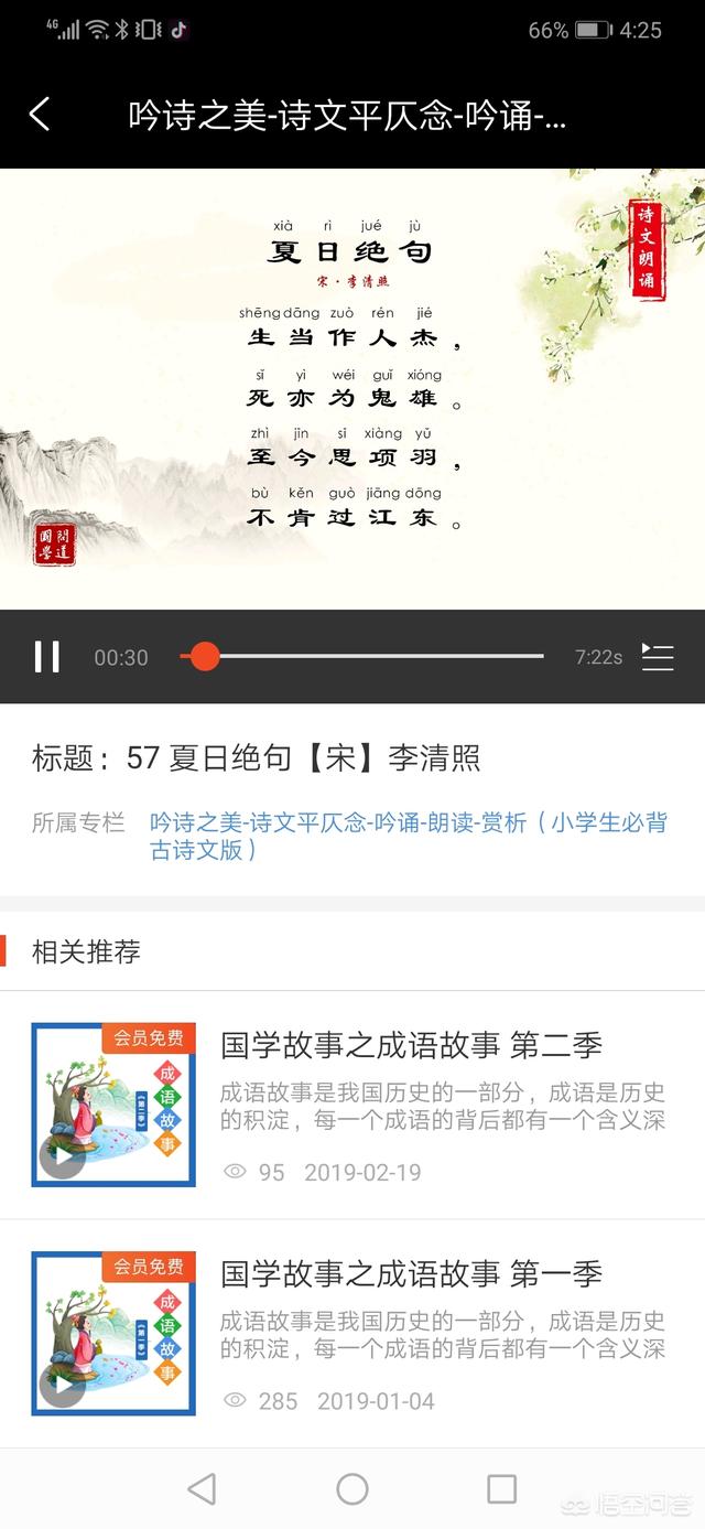 “问道国学”APP上有专业的 朗诵,吟诵,诗文讲解,上海辞书出版社出品,内容非常的权威!诗文原文,译文,讲解,音频,视频,内容非常丰富。