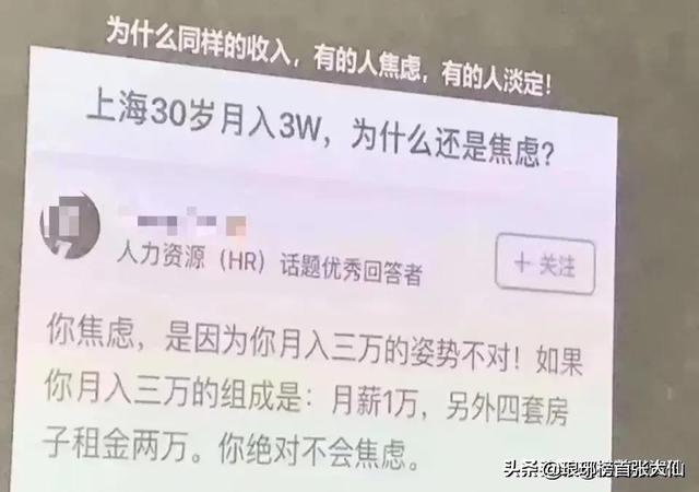 就好比,同样是月入三万,有的人焦虑,有的人则是开心,如果你的月入3万如果是按照月薪1万另外4套房产的租金2万,那你绝对不会焦虑。