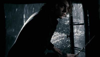 “窗台上栖着一个金发少年,姿态像一只大鸟。在灯笼的光晕照到他的一刹那,哈利看到那张英俊的脸上充满喜悦,然后那不速之客用魔杖射出一个昏迷咒,飞身跃出窗外,留下一串朗朗的笑声。”