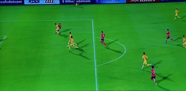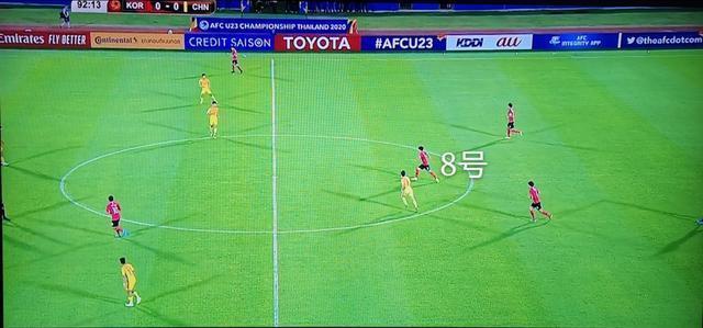 上图中,韩国8号球员金镇圭拿到球的前后,将近10秒的时间没有中国球员对他进行防守,都在那里观看,没有人意思到金镇圭会过顶长传,而且形成助攻。如果这时候有一个球员对金镇圭进行干扰,他的过顶长传球很难精准的找到11号球员李东俊,这也是国奥避免被绝杀的最好时机。