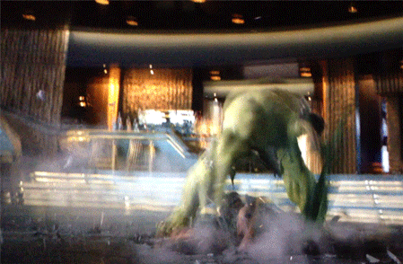 对,没错。这就是浩克在《复联1》中爆摔洛基之后的感言。当洛基的大军因为浩克的到来而全线溃败之时,洛基面对眼前的浩克,还一脸优越的嘲讽,自己是神,不是你们可以打败的。