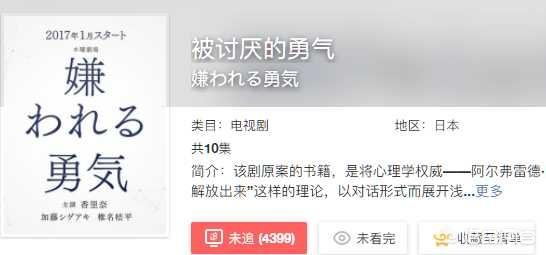 我们经过九年义务教育或者是更多年的学校,被各种大人老师教育要学会与人为善,做一个好人,顾忌他人感受,却没有人教我们如何应对他人对自己的厌恶以及如何正视他人的讨厌。这部剧就教了这一些;而且这部剧是根据阿尔弗雷德心理学家《被讨厌的勇气》心理书改编而成的。