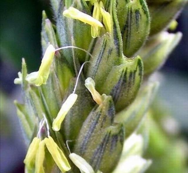 小麦当然开花了,不过小麦是自花授粉,开花的时候只是在麦穗的上面有一些花粉,黄色的。