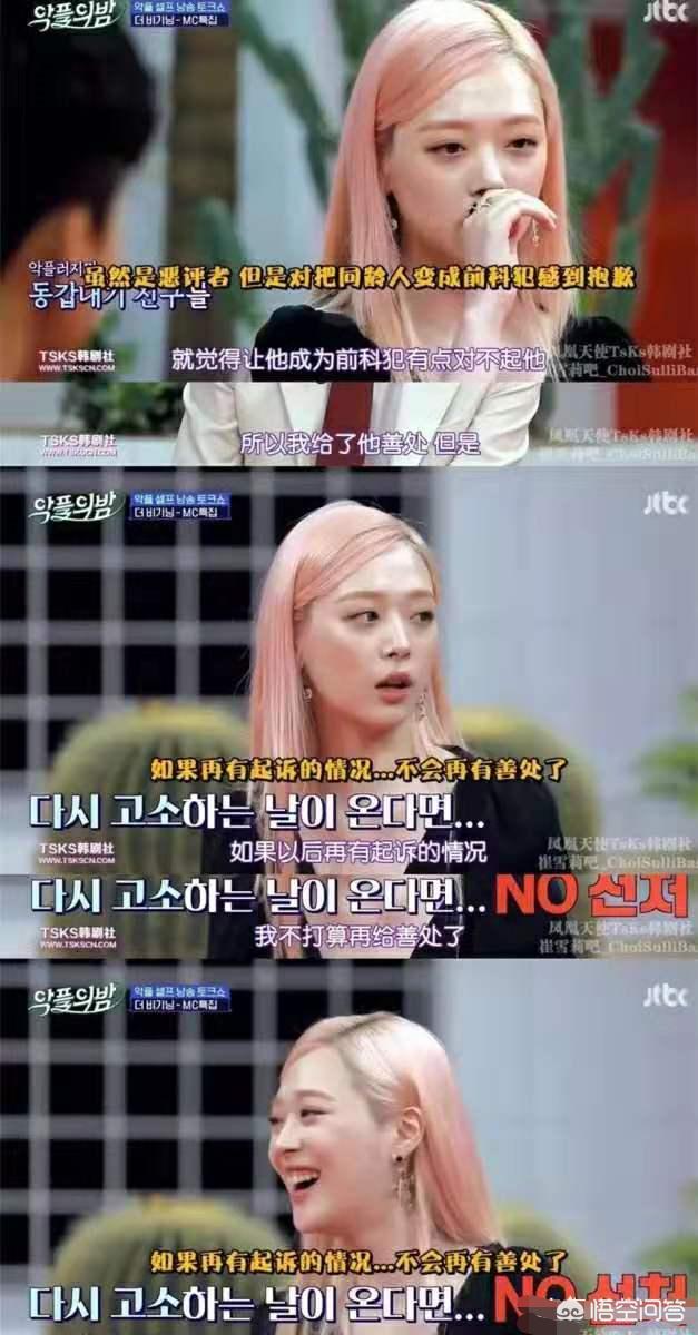 某一次,雪莉在节目中说到要起诉恶评者,但是一听闻他是正在读书的同龄人,雪莉转而原谅并改口说: