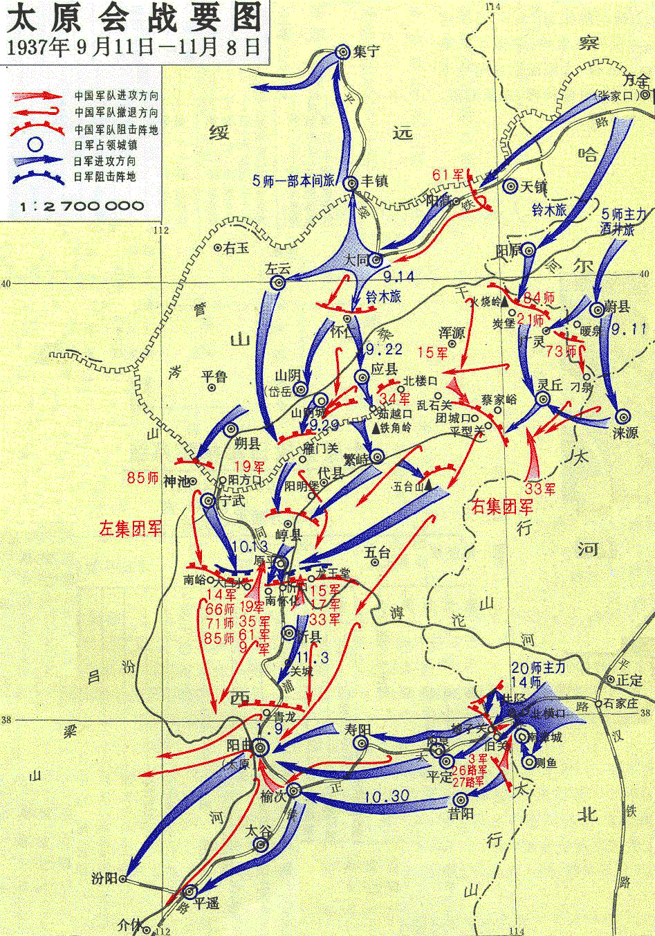 一个主要在北线作战,先后在娘子关、台儿庄战役中血战。