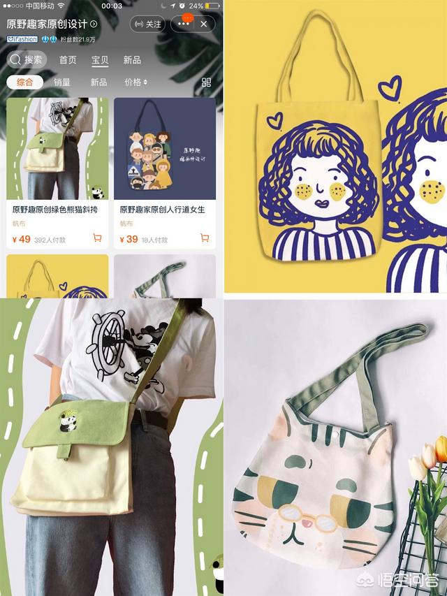这家就很特别啦,小众不撞款,帆布包图案有好些都是插画,很有趣味。