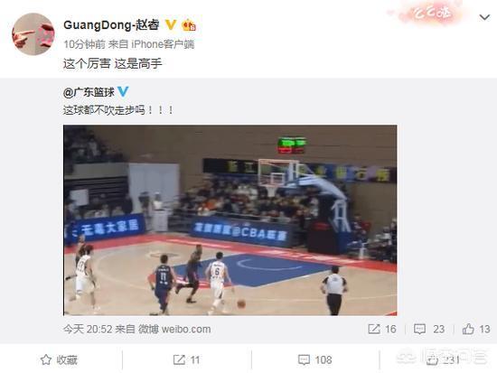 广东队核心后卫赵睿在赛后也是连发三个微博进行调侃,侧面也是对这场比赛表示不满!