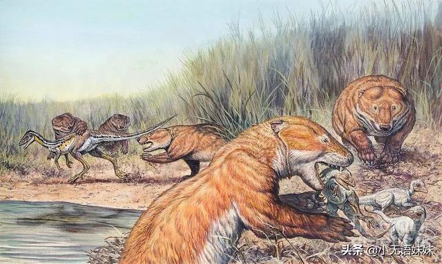尽管哺乳动物中出现了爬兽这种掠食者,但是仅仅有一米长,体型和一只狗差不多,是不足以抗衡恐龙的。虽然说是吃恐龙的哺乳,但是仅仅发现一具未消化的幼年鹦鹉嘴龙,而鹦鹉嘴龙本身就是小型恐龙罢了。所以那个年代,哪怕是爬兽也是活在各种大型恐龙的阴影之下。吃恐龙的爬兽