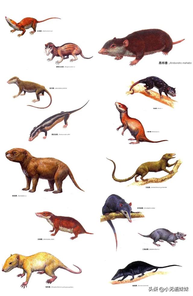 此时地球这一个宽广的舞台,似乎没有哺乳的地位。大家印象里的哺乳动物都是和老鼠一样弱小,蜷缩在暗无天日的洞穴里瑟瑟发抖,到了夜晚才敢出来寻找昆虫、蠕虫以及植物。等到了天亮立刻逃回洞穴,把舞台还给了恐龙们。中生代的哺乳,看起来都很像小老鼠