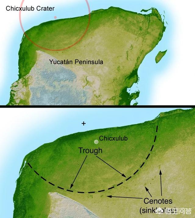 首先要说的是位于墨西哥希克苏鲁伯陨石坑【如下图所示】。这个陨石坑大概是1978年左右,一名地质学家在勘探石油的时候发现的。这个陨石坑并不是位于地球表面,而是深藏在地下,这名地质学家是通过该地区的重力异常才发现这个陨石坑的。