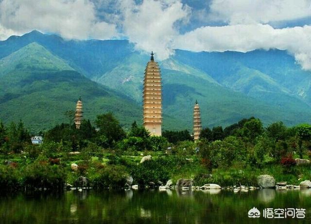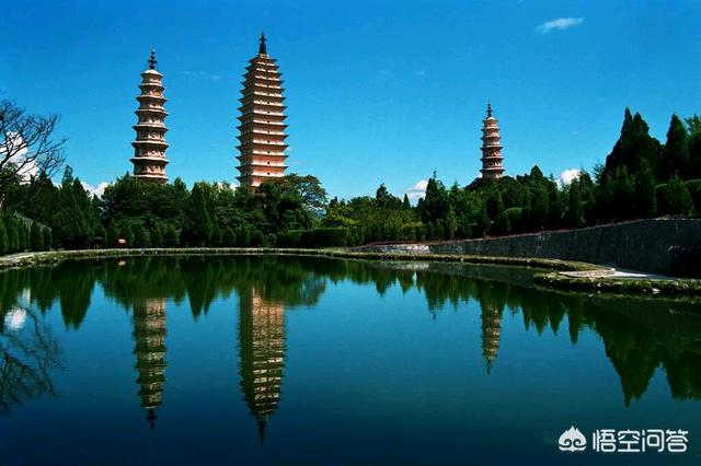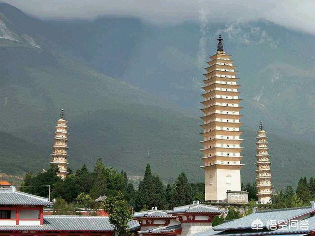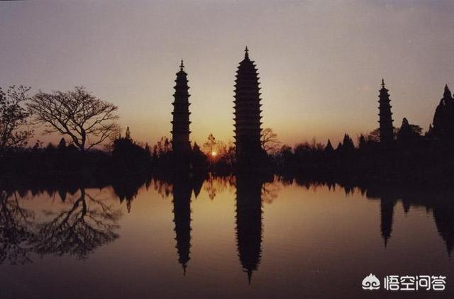 ′在云南大理县城北的1·5公里苍山之麓,有三座砖塔鼎足耸立,它们西靠烟云变幻的苍山,东临波光粼粼的洱海,三塔笔立其间,令山光水色愈显清新秀丽。