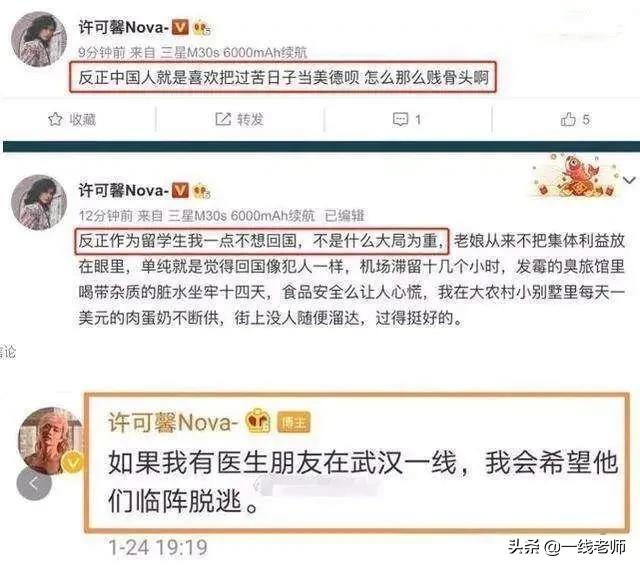 5、“如果我有医生朋友在武汉一线,我会希望他们临阵脱逃。——许大小姐,临阵脱逃可是贬义词哦,都像你说的临阵脱逃,那抗疫战谁去打,怎么打赢,受了二十多年的教育,价值观完全偏掉了。