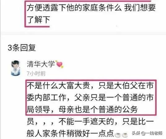 7、“不是什么大富大贵,只是大伯父在市委内部工作,父亲只是一个普通的市局领导,母亲也是个普通公务员。”——纪委不是表态了吗,这是条有价值的消息。
