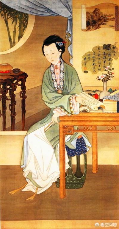 这是相当具有大家闺秀气质的图片,图画中依旧是在屋里。屋中陈设非常简单,丝毫不见华丽之气,只是一幅字画和一些书籍而已。