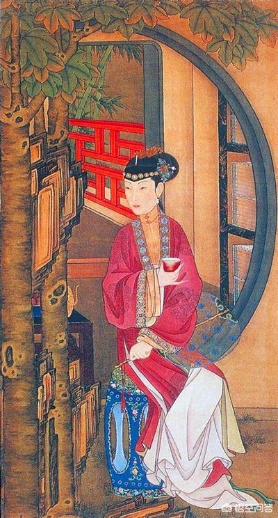 她一手端着茶杯,一手握着芭蕉扇,眼神却闪烁看到别处。衣服虽然是以红色为主的暖色调,但从冷漠的表情,却显得很有心机。这与我看其他图画的而产生的愉悦感觉完全不同。
