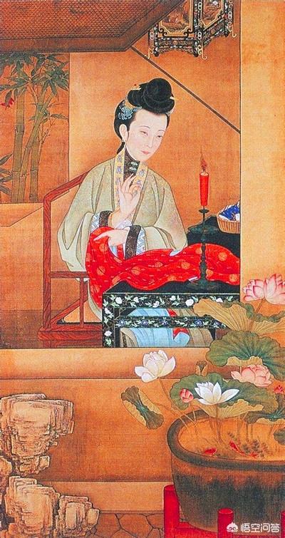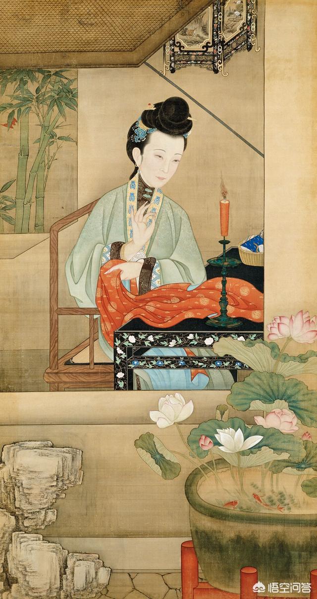而画师,非常巧妙的,用莲花作为点缀,引用出淤泥而不染,更能体现这种坦然。