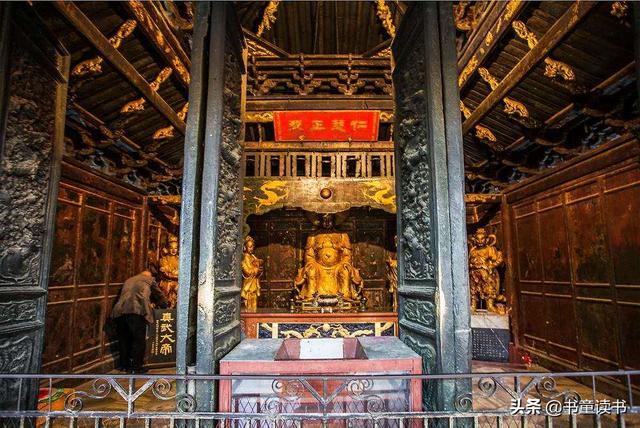 殿中供鎏金神像5尊,中为真武帝君,侧塑金童玉女,两旁有水火两将。在中国古代神话中,真武大帝是北方之神。明朝的皇帝更是将自家誉为真武大帝的化身,所以在明朝时期建筑的寺庙中都有真武大帝身影出现。