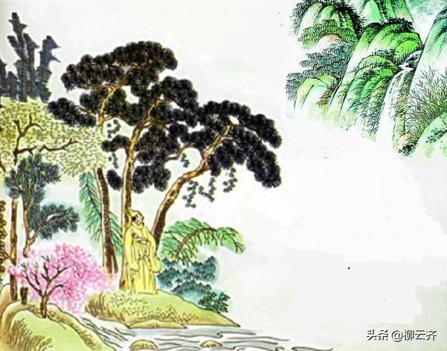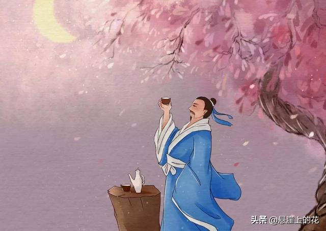 这是李白年轻时候的作品,说的是他某次去戴天山寻仙访道,这一路上的见闻。前半阙写的是他入山后看到的景色:先是隐隐约约的听见溪流声中夹杂着狗叫声,再是看见路旁盛开的桃花和桃花上的露珠。这里诗人由远及近的描写了自己的所闻所见,而且观察的非常仔细。然后他走进了树林深处,便看见了有鹿在远处的密林间时隐时现。再是提到时间,正午时分他来到了小溪边,却已听不见寺院的钟声了。下半阙写的是自己的心情。你看那碧绿的竹子长得冲天而上,仿佛直插云霄,飞流而下的瀑布还高挂在青峰上,可是我要访的人呢?已经不知到哪里去了,于是只好倚靠在古松旁排遣消愁。全诗表达出了一种静谧通达的氛围,体现了诗人“寻仙”不得的百般惆怅。