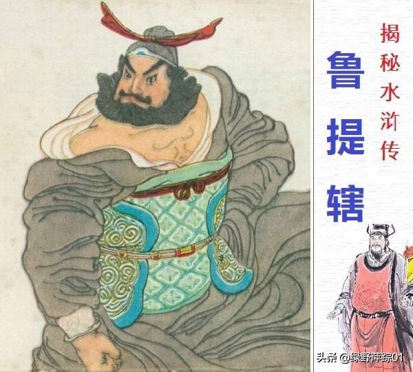鲁提辖,本名鲁达。正应了名字,为人正直,通达。侠义豪放,所以不喜 弯曲、奸诈、邪恶。因为听到弱女被镇关西欺辱,他腔内有正气贯日,便去找镇关西教训,不过没想到镇关西就被他三拳打死了。因担心如果入狱没人会给送饭(他是孤身一人,无父母无兄弟无妻无子,所以应天孤星),()一转之心也是可怜:),就由赵员外安排出家了。当然后来又有些事,他去了梁山。打完方腊,再次出家。以前是人不得已在寺院,心不在焉没有信佛。后来,是离开纷乱,进入佛门,参悟佛学,旷达通透,修成正身,最后一句:我才知道我是谁! 离尘仙去!