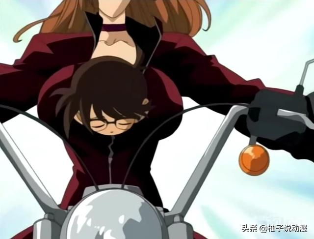 第二天,工藤有希子骑着摩托带着熟睡中的柯南,而柯南待的位置就在(如图)。这能放下柯南这么大的孩子嘛。