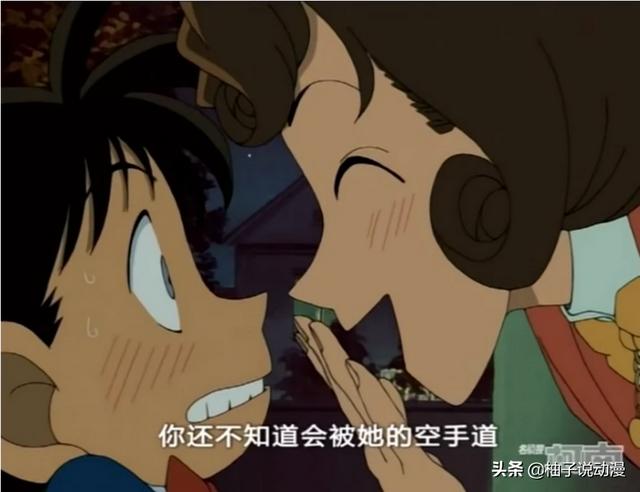 在柯南脑补了小兰的空手道后,更是吓得汗都流下来了。