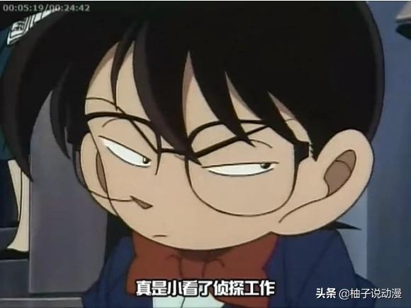 为什么这名侦探一直戴着太阳眼镜呢,原来这名侦探,从小就很胆小,太阳眼镜是为了不让对手看不起他才戴的。话音刚落,太阳眼镜就被毛利小五郎摘了一下。太阳眼镜的下面,竟是这么一双卡姿兰大眼睛!