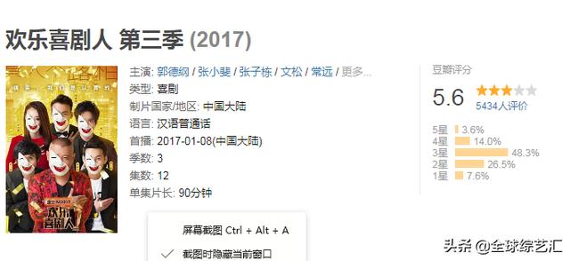 第一季的火爆,直接导致了各种喜剧节目的相继上马,各种眼花缭乱的喜剧节目,不管好坏,先一股脑的赶鸭子上架,喜剧资源的浪费,喜剧人才的过度曝光,加上节目过重的负担,难以求新求变,我们从第二季明显就看到《欢乐喜剧人》的收视率不断下降,豆瓣的评分一低再低,中国喜剧市场就是那么大,没有节制,没有约束,行业管理混乱,恶意竞争,在这波喜剧名利场之中,《欢乐喜剧人》直接被后浪狠狠地拍死在了沙滩上,