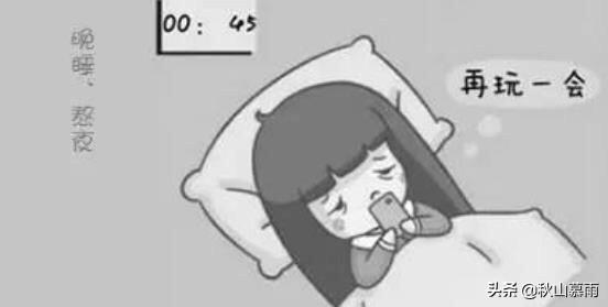 年晚睡身体会被拖垮,工作也会出现问题。所以我们一定不能陷入这种长期的晚睡情况。晚睡的原因,一般就是因为学习、工作、感情的压力。而这样的压力我们的父辈,爷爷辈又是有的。但是为什么,今天的我们睡不着睡得晚?因为今天的娱乐手段太过于丰富了,不管是追剧,玩游戏,刷各种app都是特别打发时间的。稍微不注意,几个小时就过去了,再一看时间已经12点过了,洗漱一下就1点了。