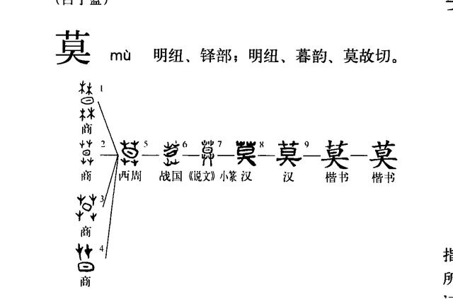 它的声符“莫”是“暮”的初文,本义是指太阳落在草丛里,也就是天将晚,并由此引申出没有的意思。因此也有人认为这个字的意思就是:没有水就成了沙漠。