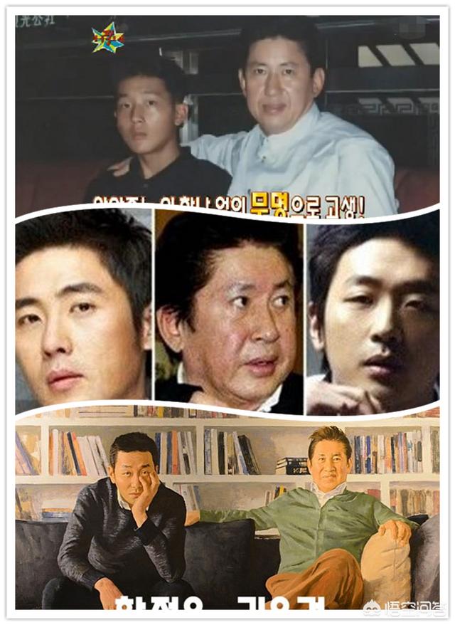 照片中左边是河正宇的哥哥,也是电影行业的。河正宇这个名字是自己改的艺名。其实是金氏三父子。