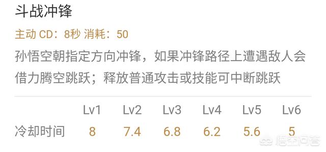 很简单,就是个位移,没有其他任何效果,但原本定位战士的猴子一直都是作为刺客在玩的,本身较脆,又要迅速的接近敌人,所以这个唯一的位移还是比较重要的,每次升级会减少0.6秒的CD,初始到满级是8秒到5秒,这个技能的作用可攻可守,比较灵活。