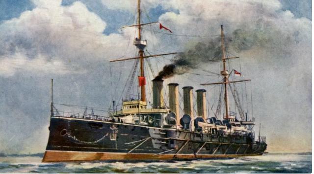 这艘防护巡洋舰排水量达到了可怕的11000吨!作为一艘巡洋舰直接超越了大概9成铁甲舰的吨位!真可谓喧宾夺主,她舰长141米,宽21米,航速20.25节,搭载16门152门速射炮,火力只能用恐怖来形容。不过由于装甲相对于吨位太弱,最后英国海军决定从此不建造防护巡洋舰,这级惊人的性能也成为防护巡洋舰的绝唱。王冠级共建造8艘,第一艘1896年下水。