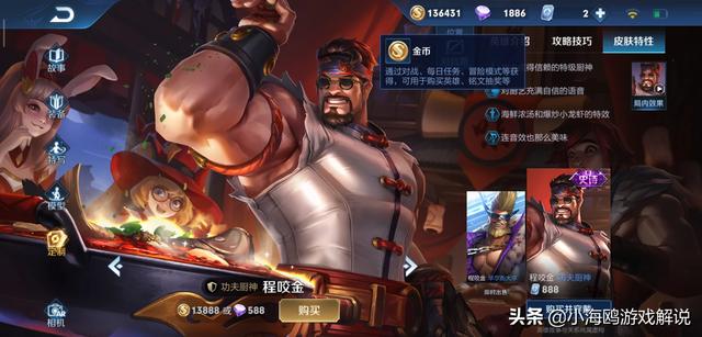 但是如果仅仅只是因为一个英雄的可玩性比较高的话,就要我们花费2000块钱去进行购买的话,小编觉得还是有点奢侈的,因为我们可以花到更少的钱去入手一款还不错的程咬金皮肤,比如说像这款89块钱的功夫厨神小编就觉得还不错。当然如果你是王者荣耀里面的土豪玩家的话,就当我没说。