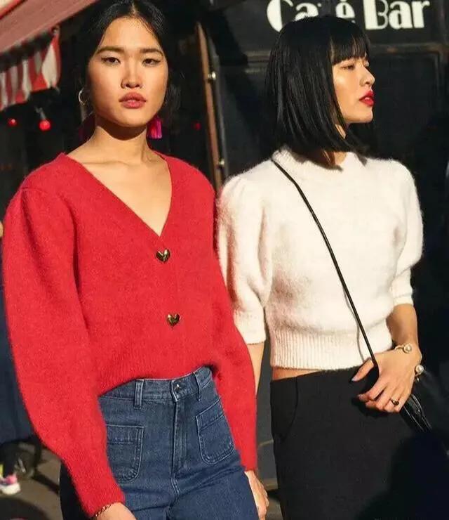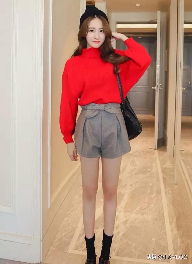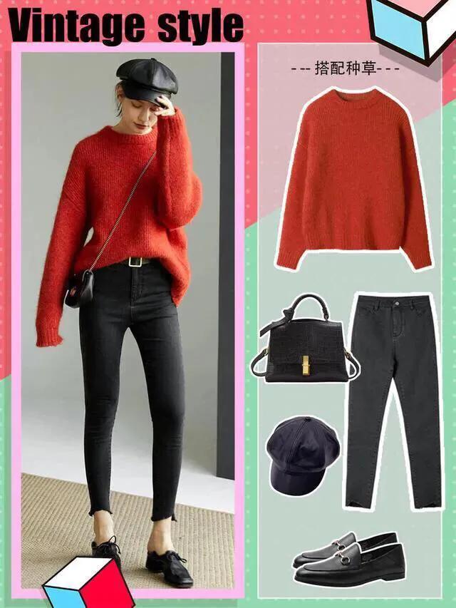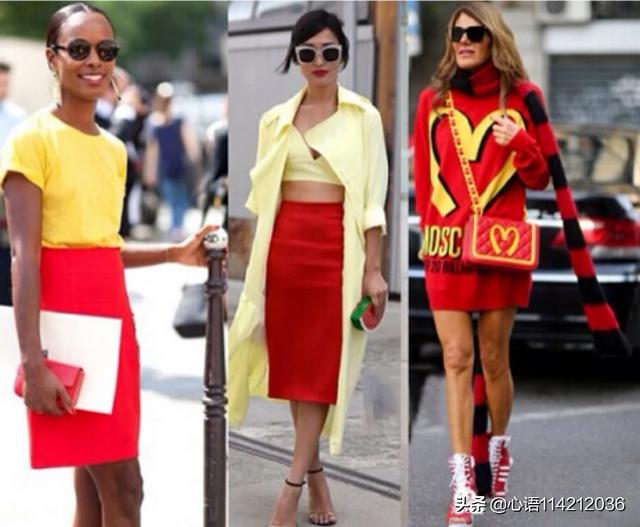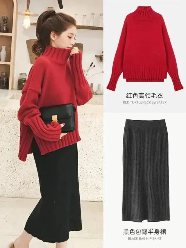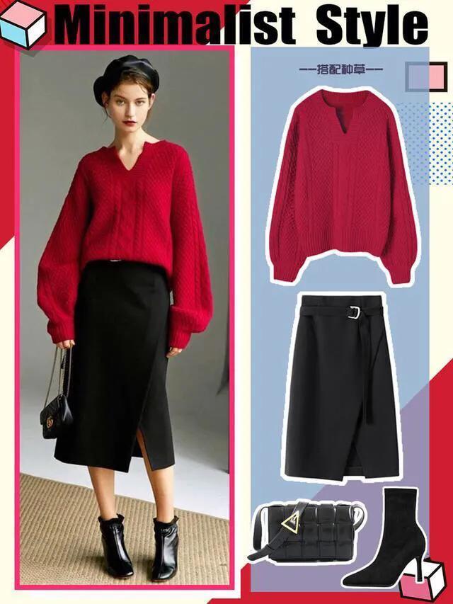 红色衣服搭配直筒裤,廋腿裤,直筒裙,百褶裙都非常好看。