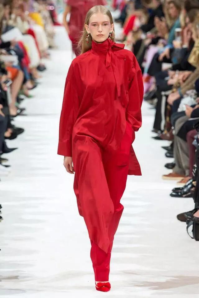 红色喜庆艳丽的色彩搭配直筒裙是不一样的风景线。