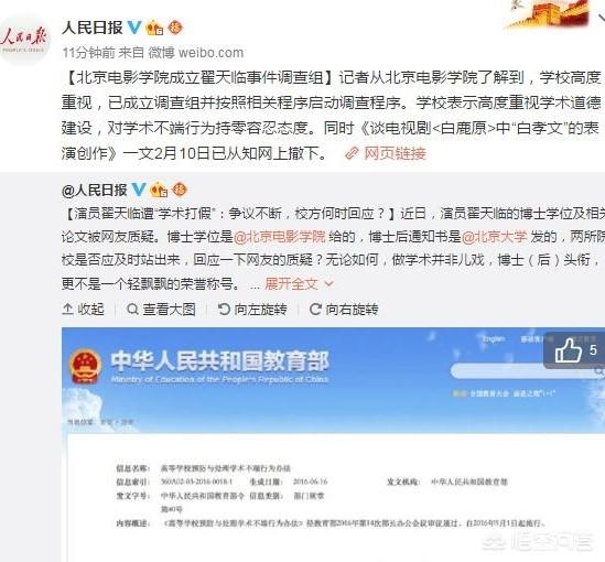 这几天在网上愈演愈烈的翟天临博士学位事件已经惊动了官方媒体,人民日报直接点名北京电影学院,让他出来给公众一个交代。现在北京电影学院已经发了声明,成立调查组开始调翟天临事件,相信不久会有结果出来。