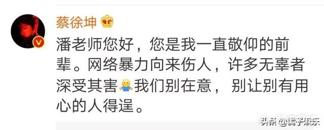 人在美国莫名躺枪但因为打扰到前辈,蔡徐坤本人还在潘老师微博做了澄清