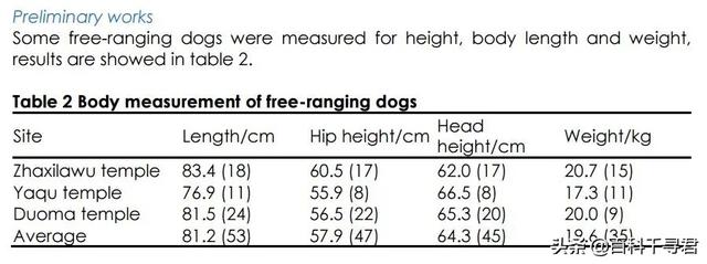 这里面的藏獒都是经过精心选育的优良个体,所以体型较大,目前藏区已经有了很多流浪藏獒和流浪藏狗。上图是三江源三个地点流浪狗的平均体尺,雌雄混合平均19.6公斤,不清楚是流浪藏獒还是藏狗但这体重也很大了,非洲的流浪狗平均体重连15公斤都没有,