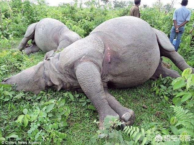 这两头犀牛就没那么幸运了,直接被劈死了。