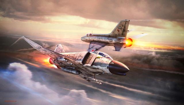 一架装有2台发动机的F-4战机,面对Mig-21的小半径转弯的时候,信奉能量主义的F-4飞行员嘴角轻蔑地一笑,你丫速度掉到底了……