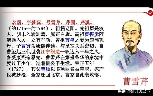 我们先来普及一个红楼梦的知识。红楼梦这本书本看做是:作者曹雪芹的自叙,也就是说这本书里面发生的事情基本以曹家的原型来写的。
