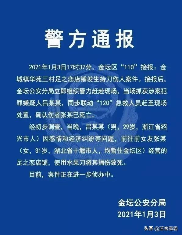 2021年1月3日吕某把“足之恋”的老板娘恋人张某杀害,起因是张某欠吕某2万元没完。