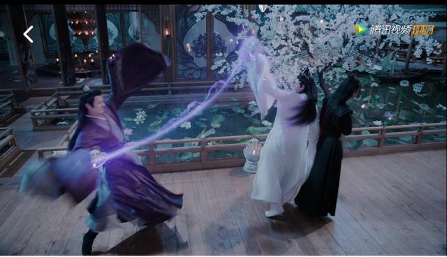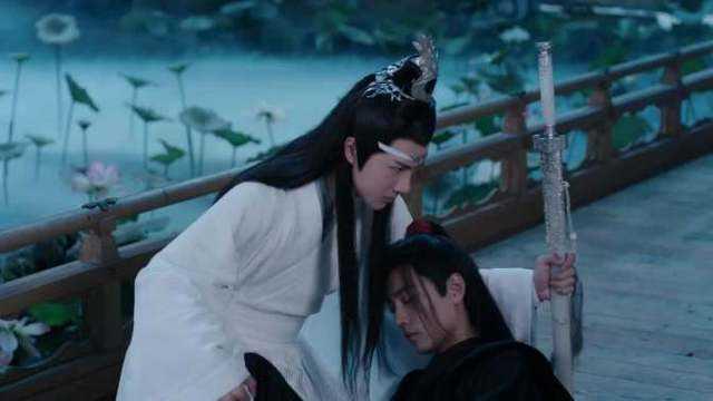 在莲花坞,江澄看到蓝湛和魏婴一起在祠堂祭拜,便对魏婴不依不饶,魏婴已经很虚弱了,但江澄还是一鞭紫电甩出来,蓝湛转身挡住紫电,并怒斥——“滚开!”