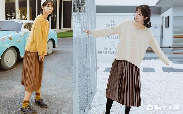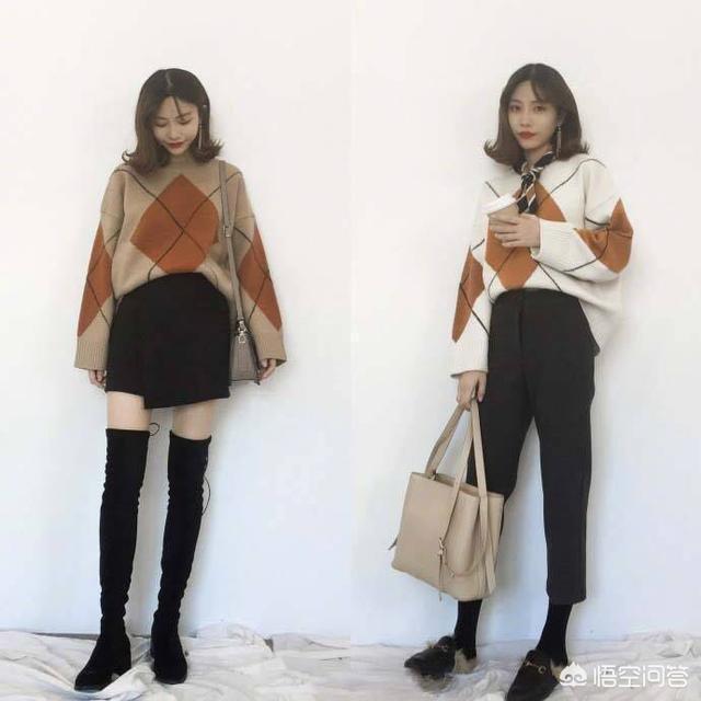 也有不少妹子拿毛衣跟半身裙搭配。一件粉嫩的毛衣搭配上学院风格子裙,很容易就能穿出女孩的青春气息来,那怎样才能穿出高级感来呢?