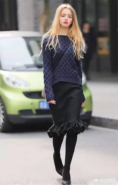 2. 紧身毛衣搭配一步裙